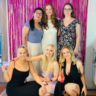 Toast a glass with your friends, put the music on, have some food, unwind but prepare to get glammed by our Team at your hens night .